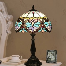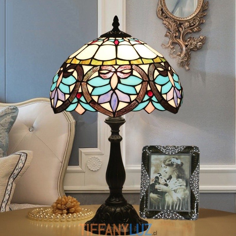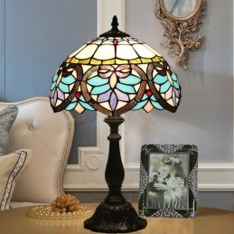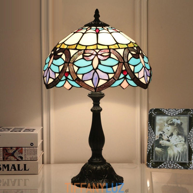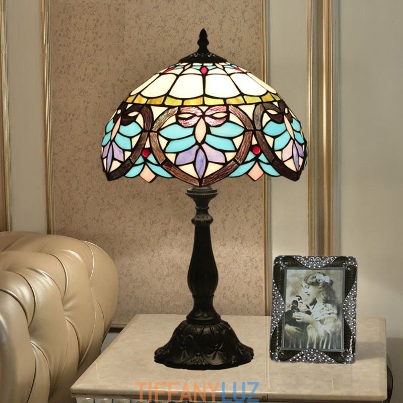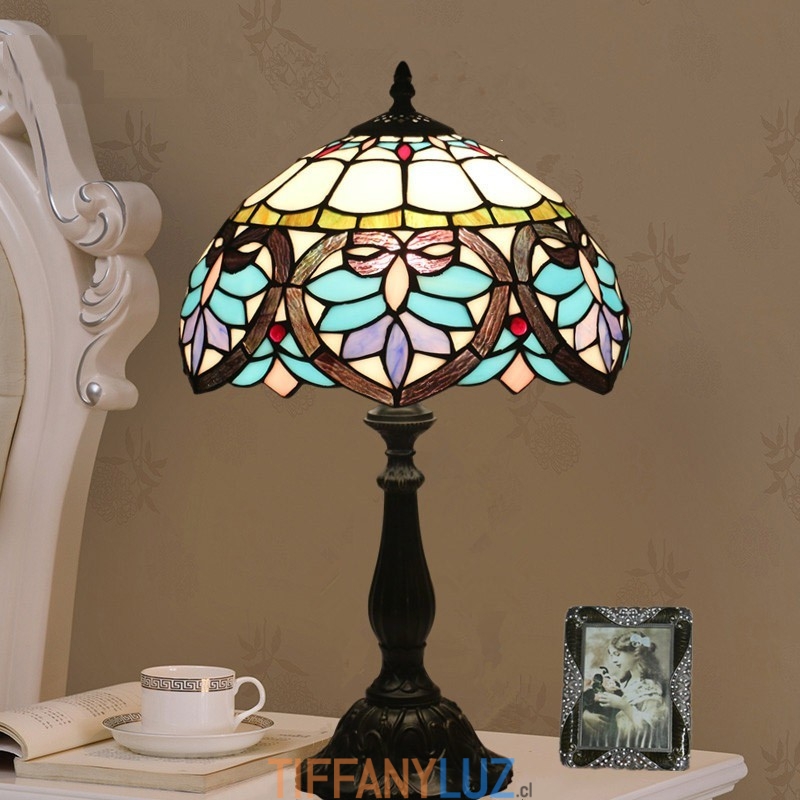 Lámpara de mesa Tiffany de estilo barroco con vidrieras mediterráneas de 30 cm