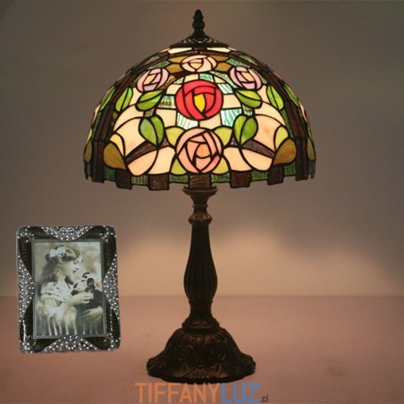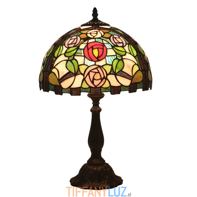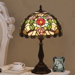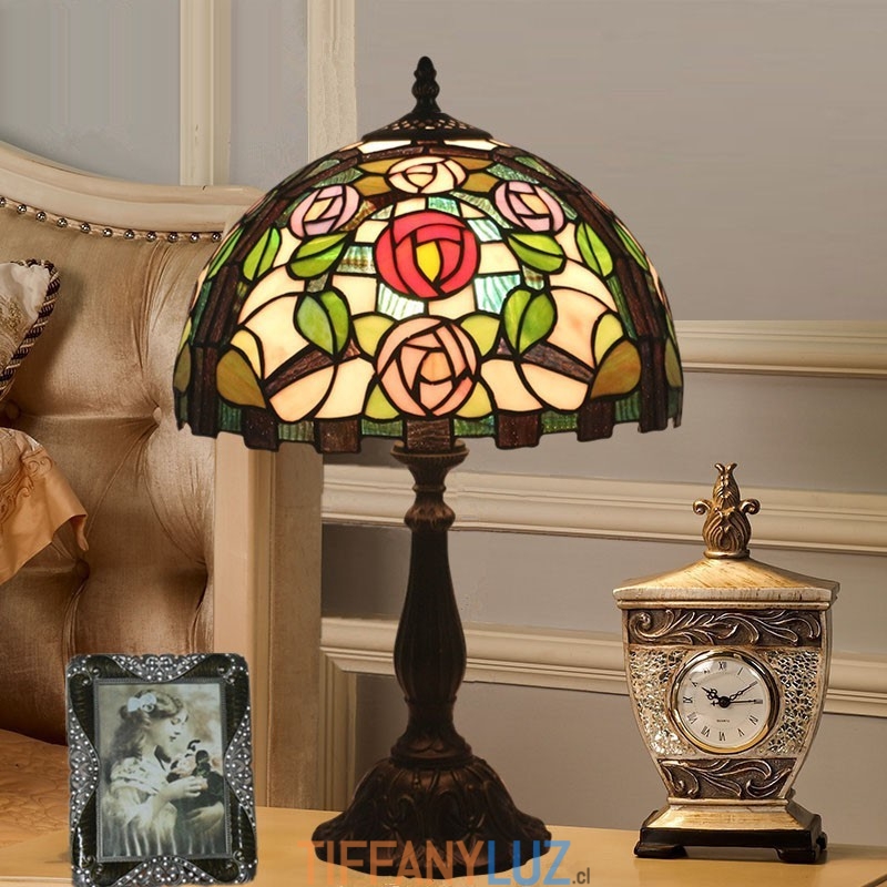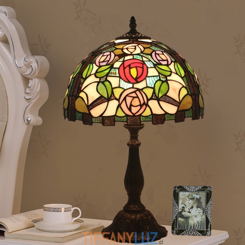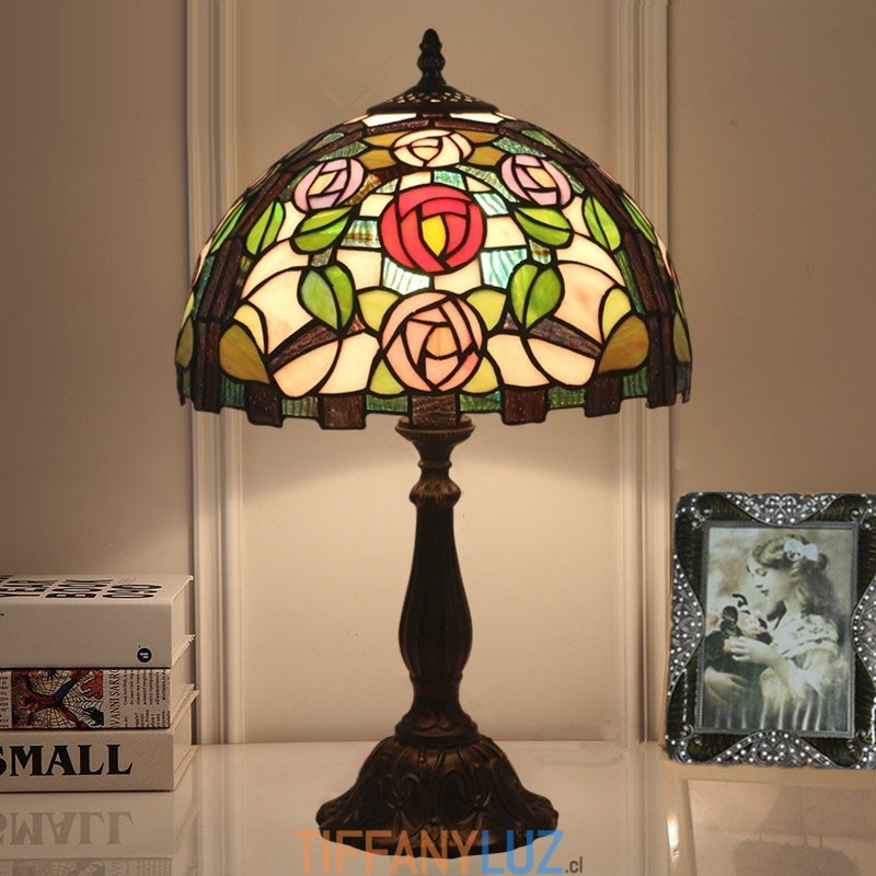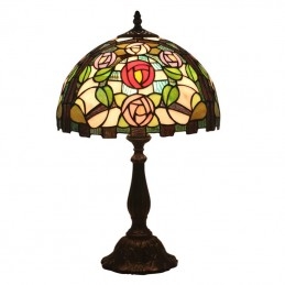Lámpara de mesa Tiffany estilo rosa con vitrales europeos de 30 cm