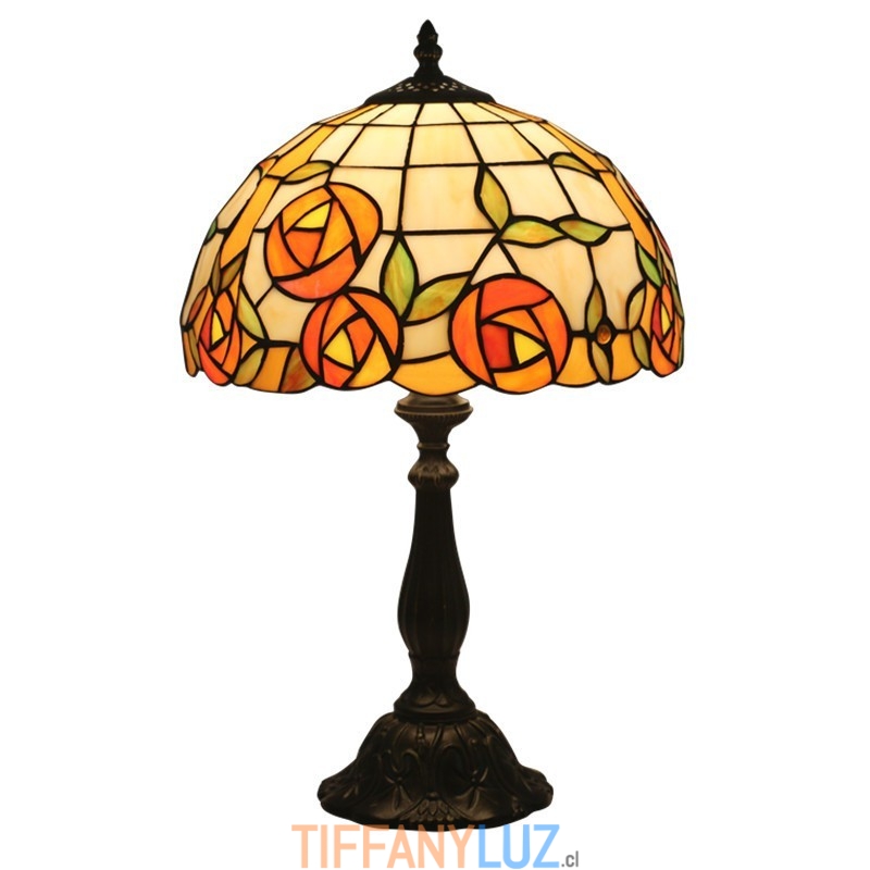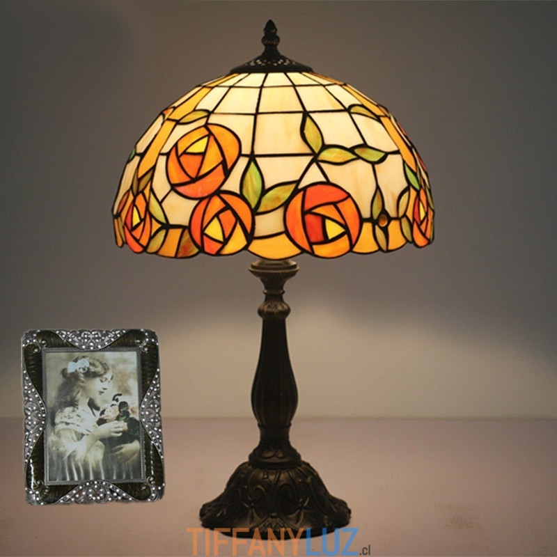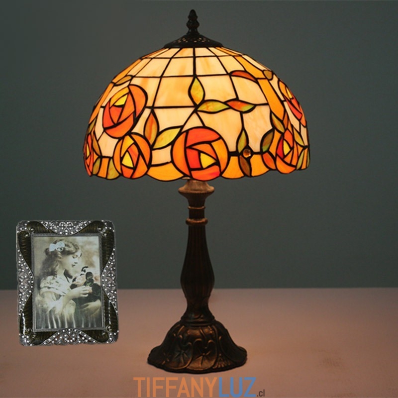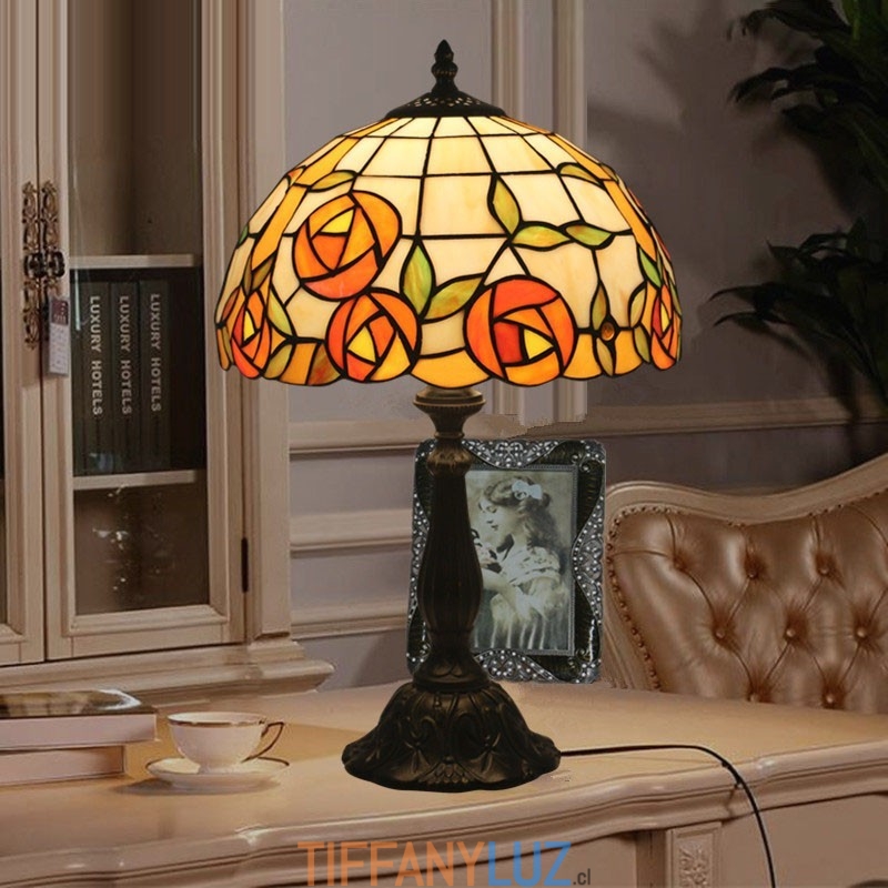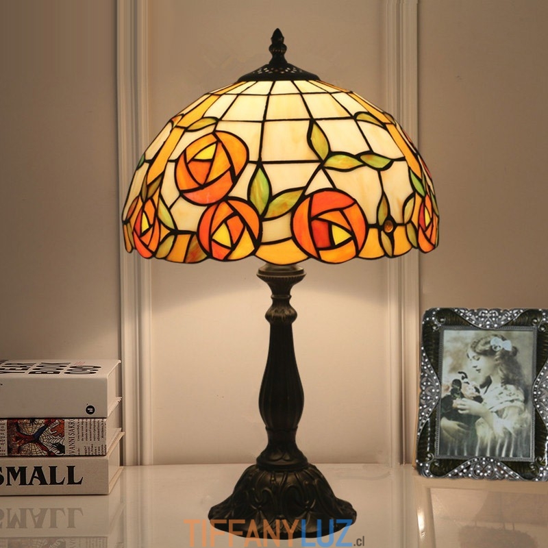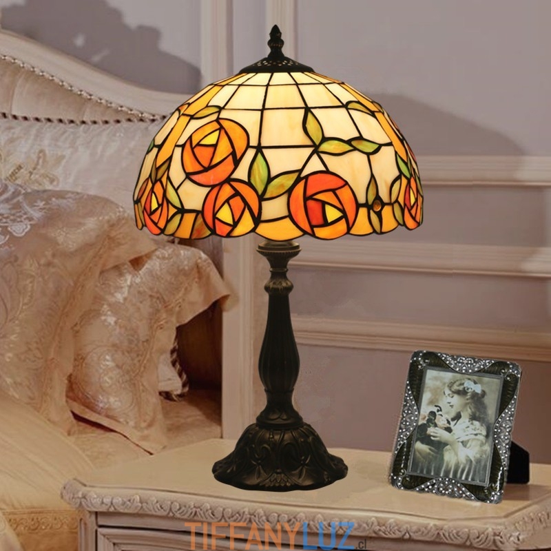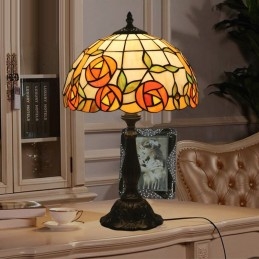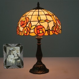 Lámpara de mesa Tiffany estilo rosa con vitrales europeos de 30 cm