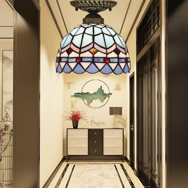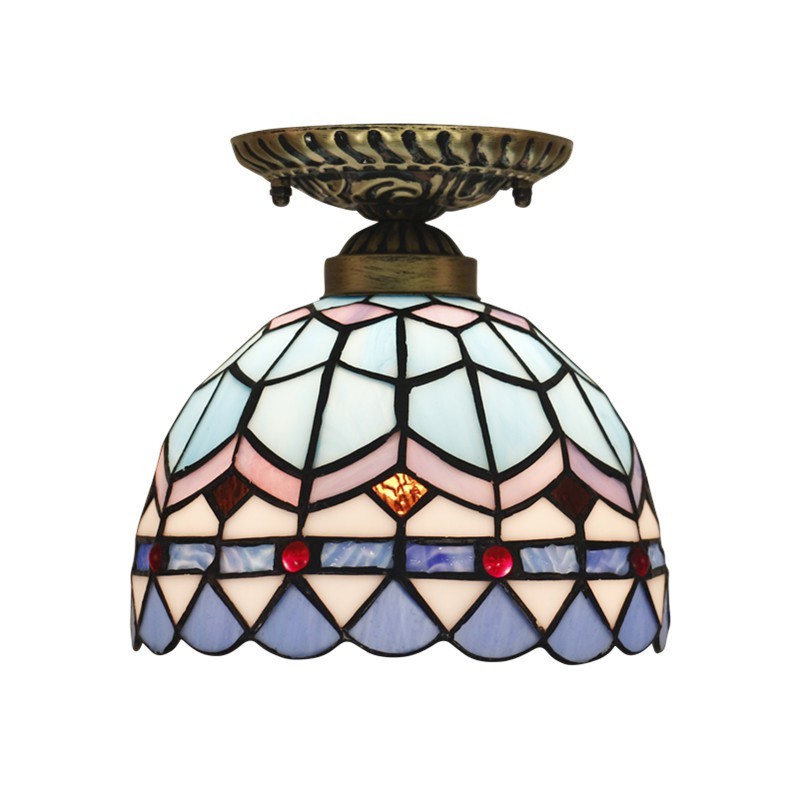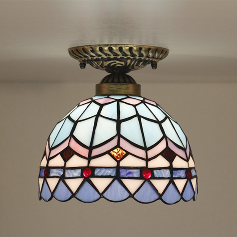 Lámpara de techo Tiffany de estilo mediterráneo de 20 cm con vidrieras de colores