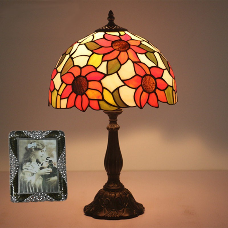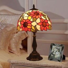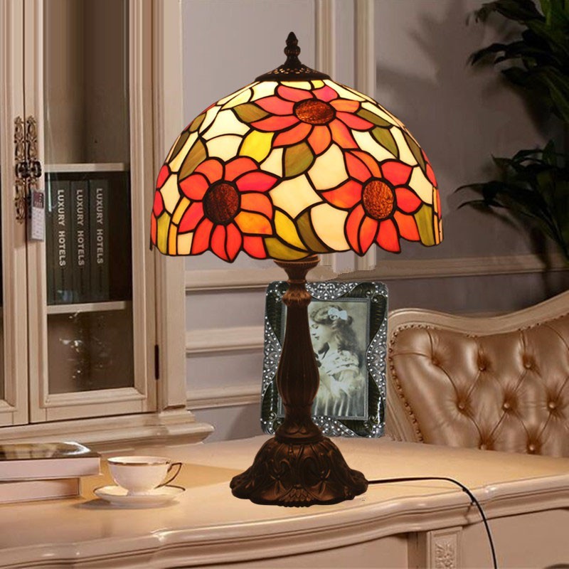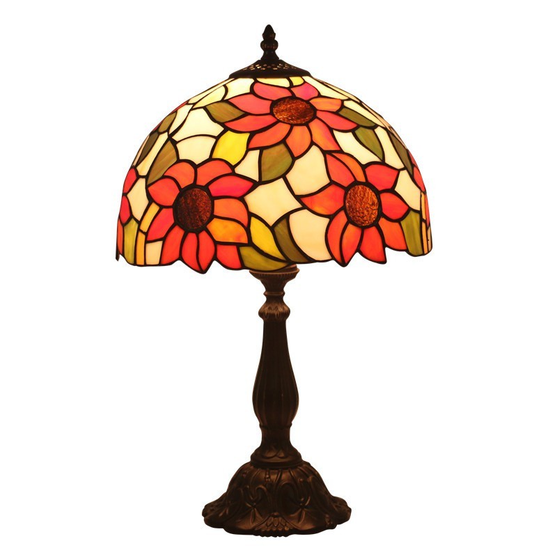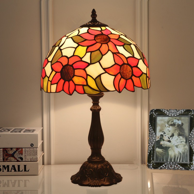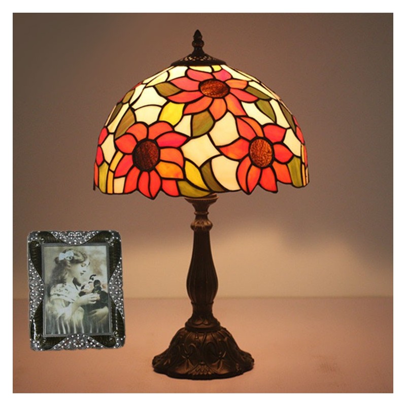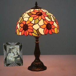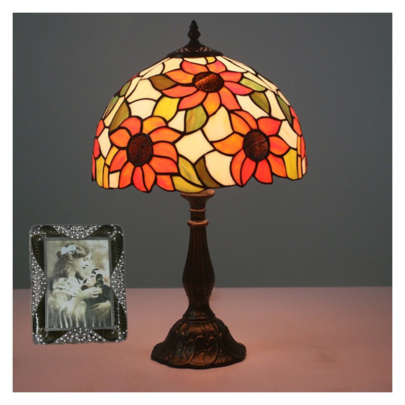 Lámpara de mesa Tiffany estilo girasol con vitrales rurales de 30 cm