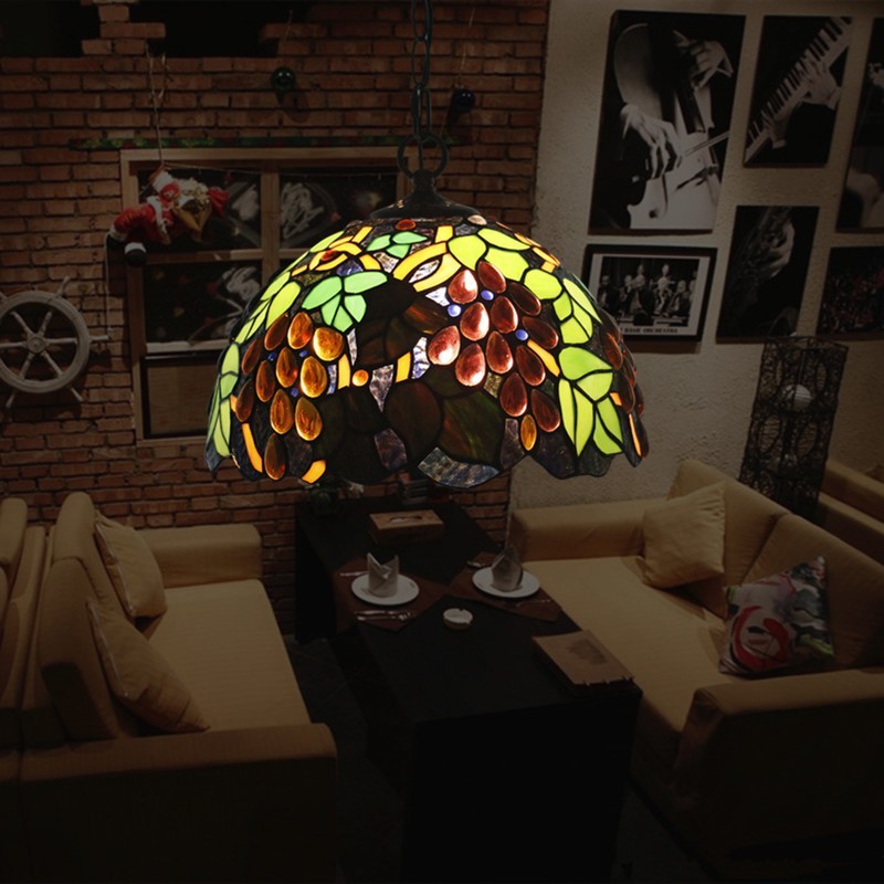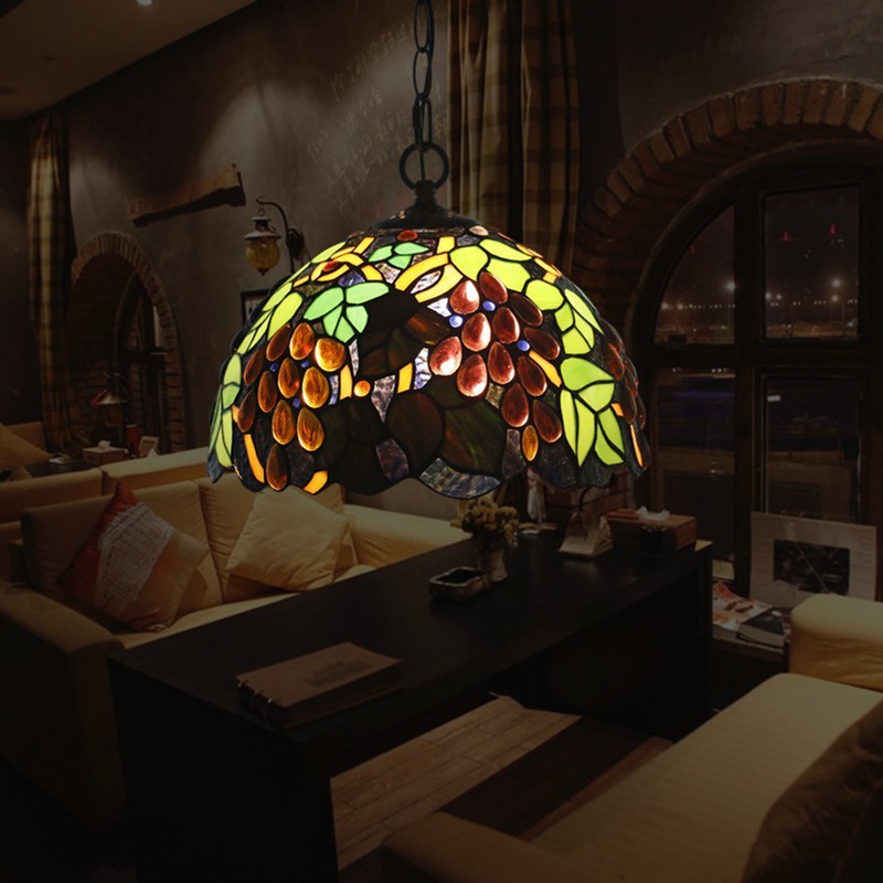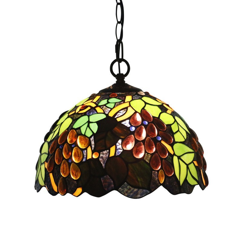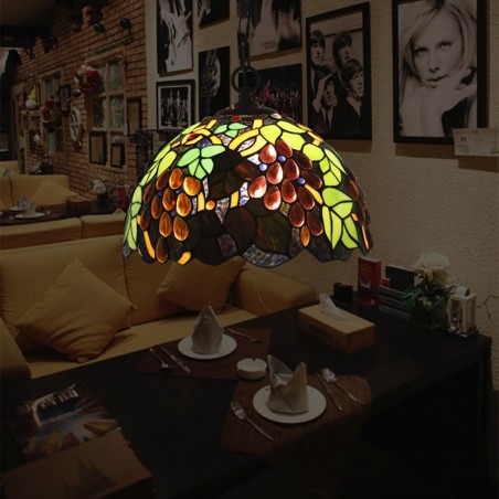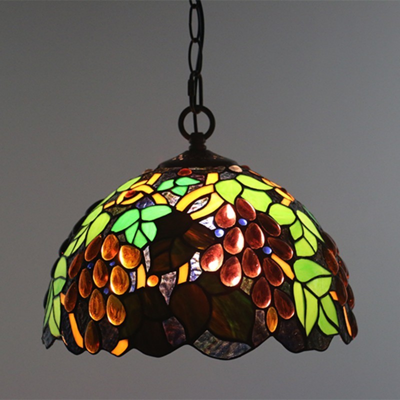 Lámpara colgante estilo Tiffany de 30 cm con vitrales europeos en forma de uva