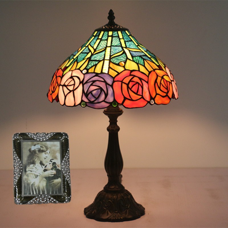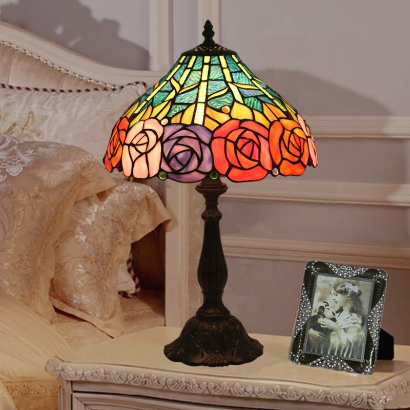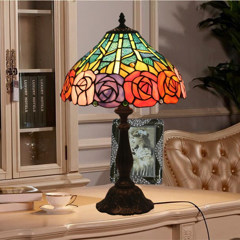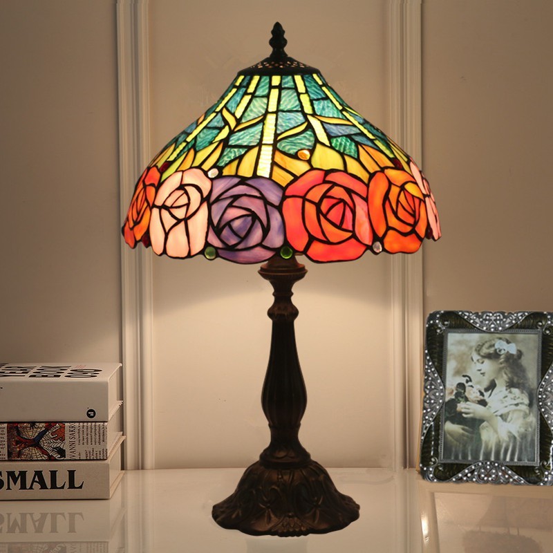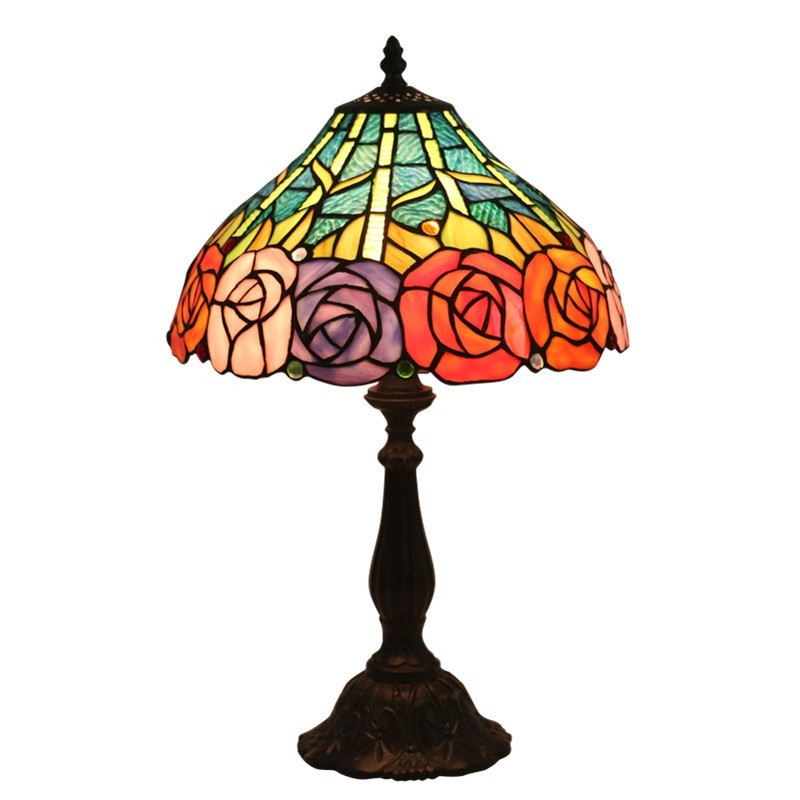 Lámpara de mesa Tiffany de cristal de colores europeo de 30 cm