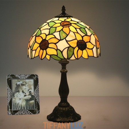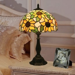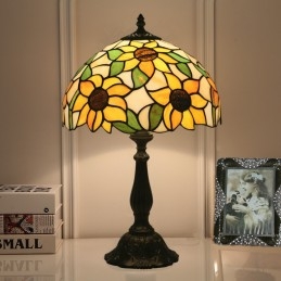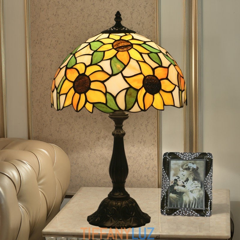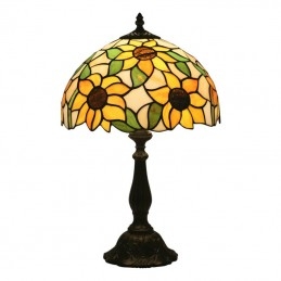 Lámpara de mesa Tiffany estilo girasol con vitrales europeos de 30 cm