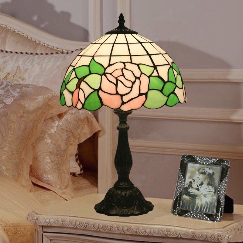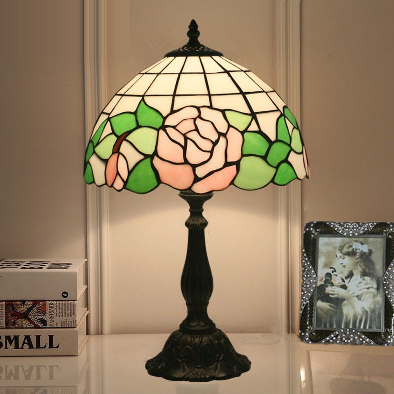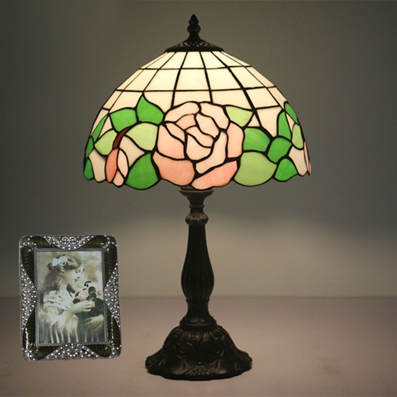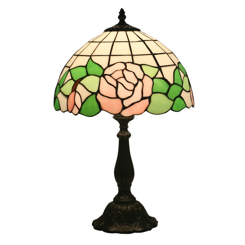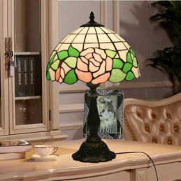 Lámpara de mesa Tiffany estilo rosa con vitrales europeos de 30 cm
