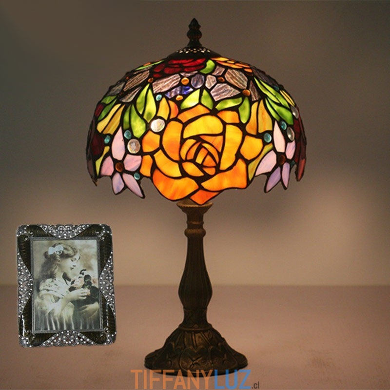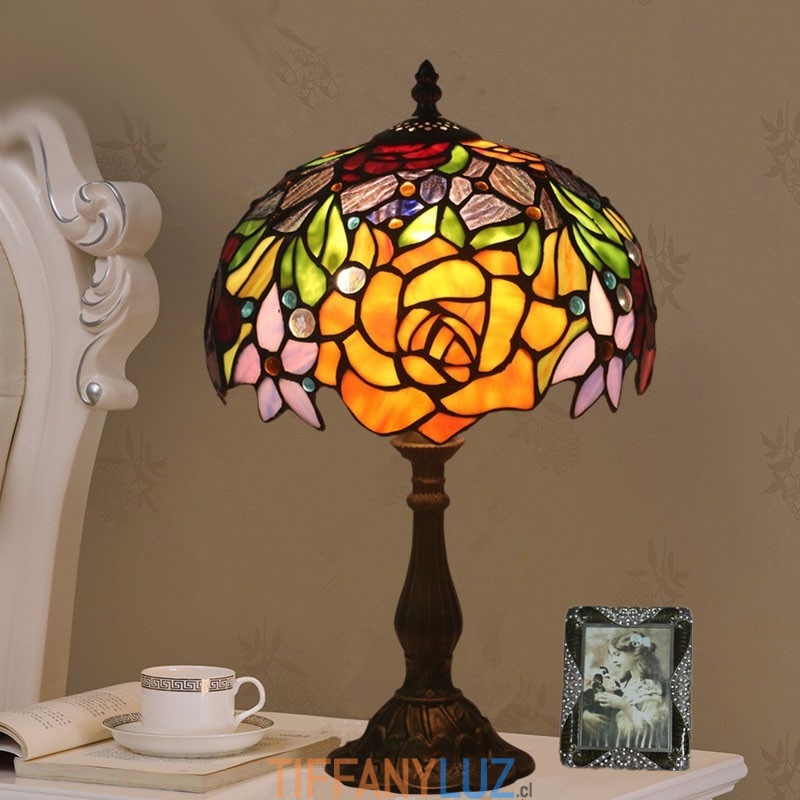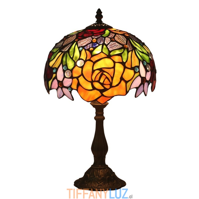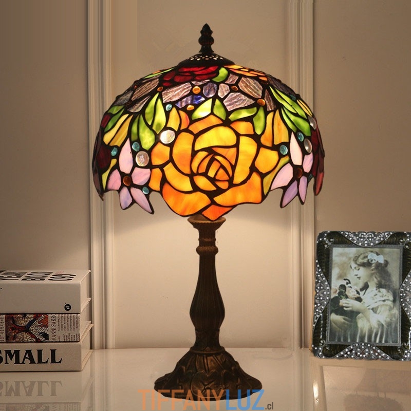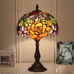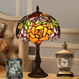Lámpara de mesa Tiffany estilo rosa con vitrales europeos de 25 cm
