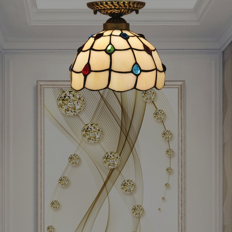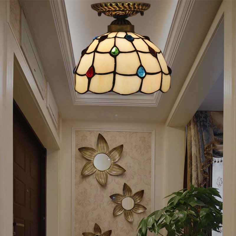Lámpara de techo Tiffany de vidrio de color simple americano de 20 cm