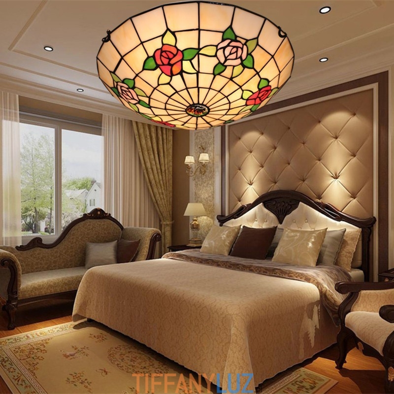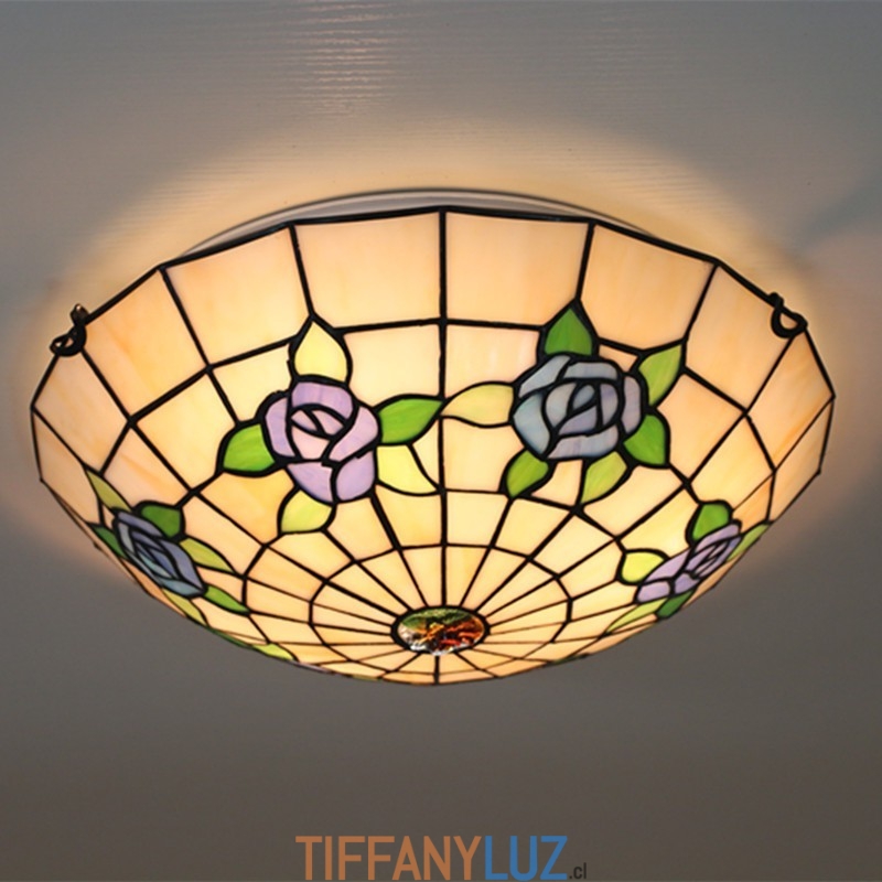 Lámpara de techo Tiffany de estilo rosetón de vidrio de colores europeo de 40 cm