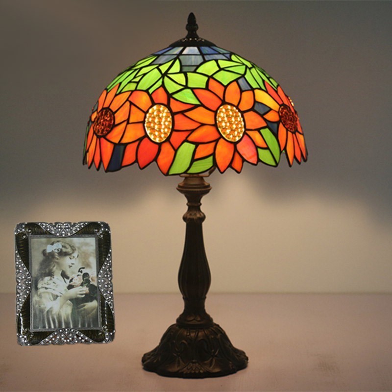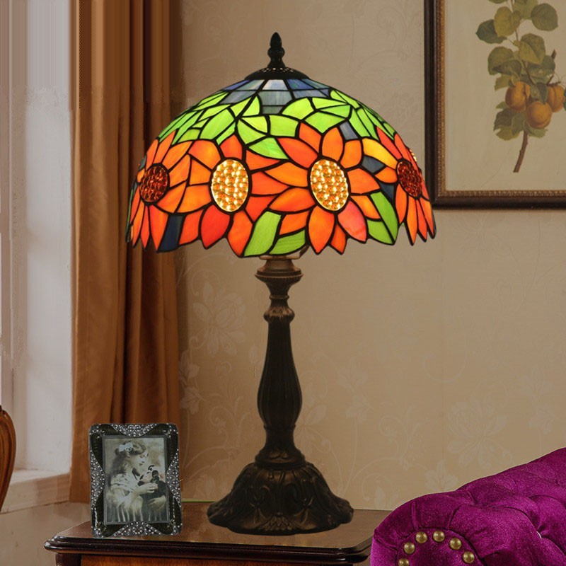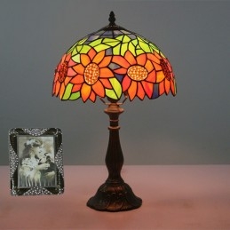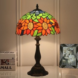 Lámpara de mesa Tiffany estilo girasol con vitrales europeos de 30 cm