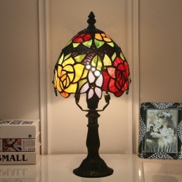 Lámpara de mesa Tiffany estilo rosa de vidrio de colores europeos de 15 cm
