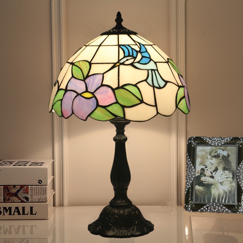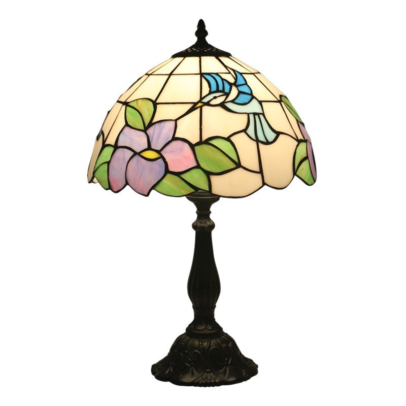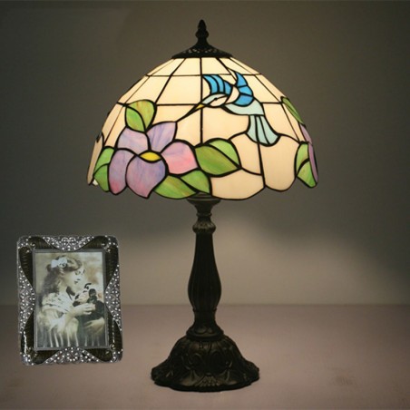 Lámpara de mesa Tiffany estilo colibrí con vitrales europeos de 30 cm