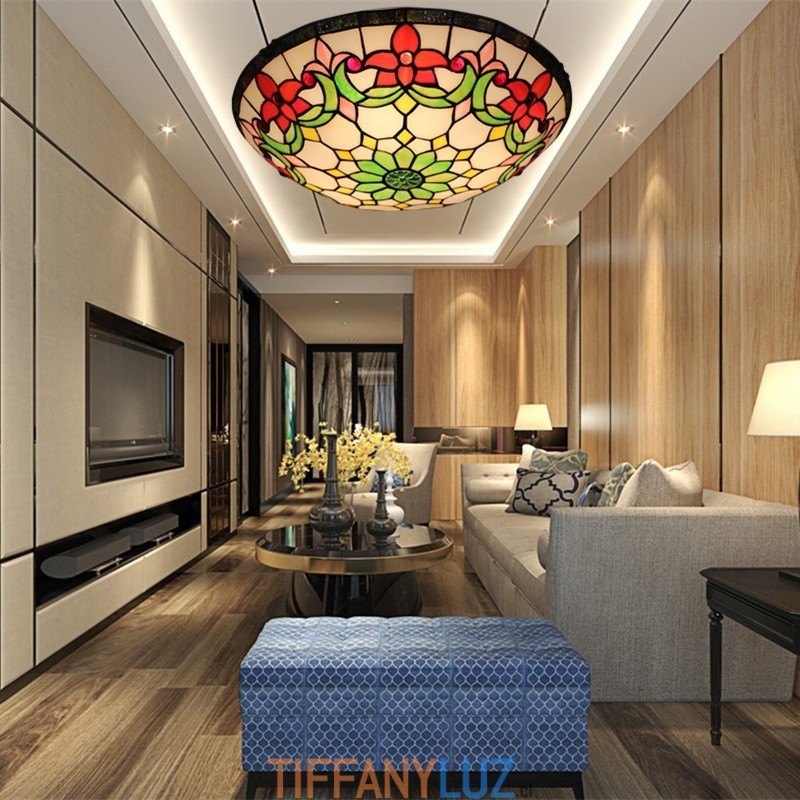 Lámpara de techo Tiffany de cristal de colores europeo de 40 cm