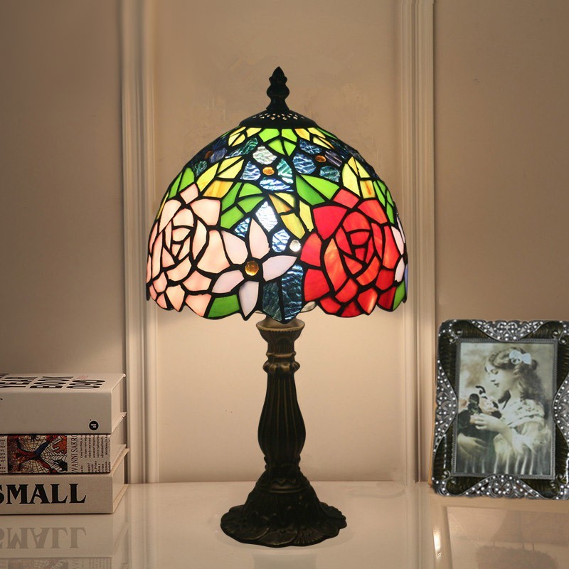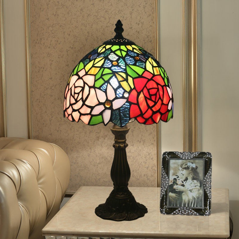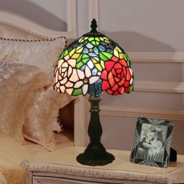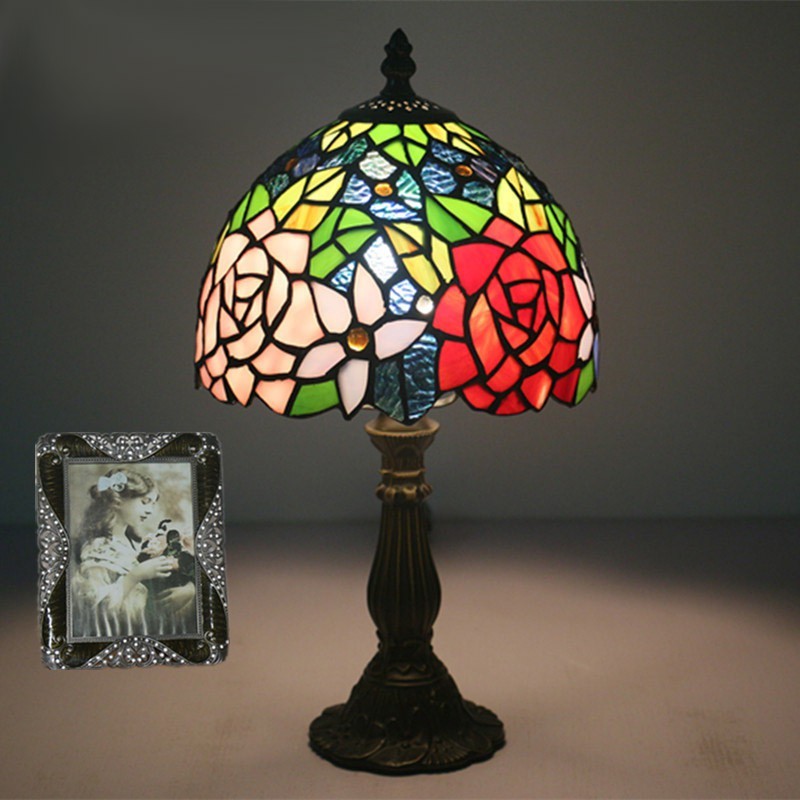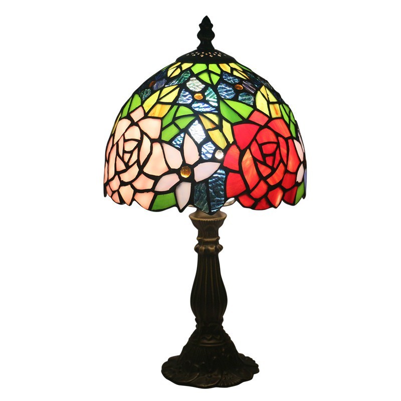 Lámpara de mesa Tiffany estilo rosa con vitrales europeos de 20 cm