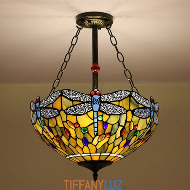 Lámpara de techo Tiffany de cristal de color europeo con forma de libélula de 40 cm