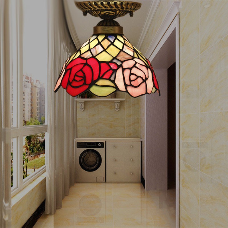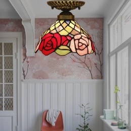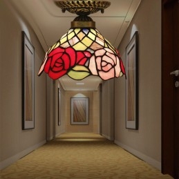 Lámpara de techo Tiffany de estilo rosetón de vidrio de colores europeo de 20 cm