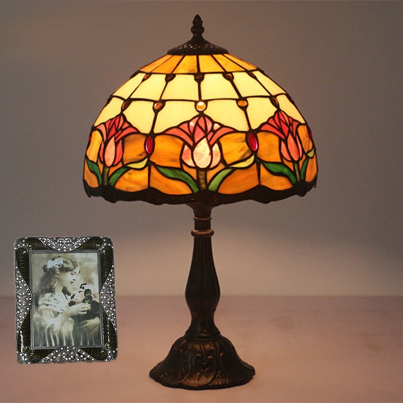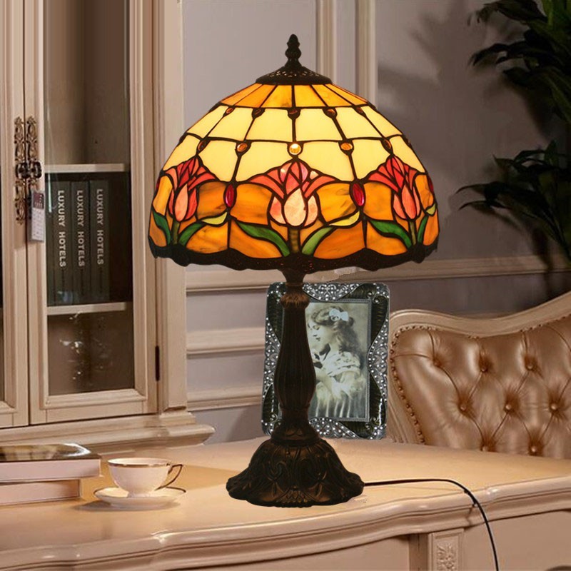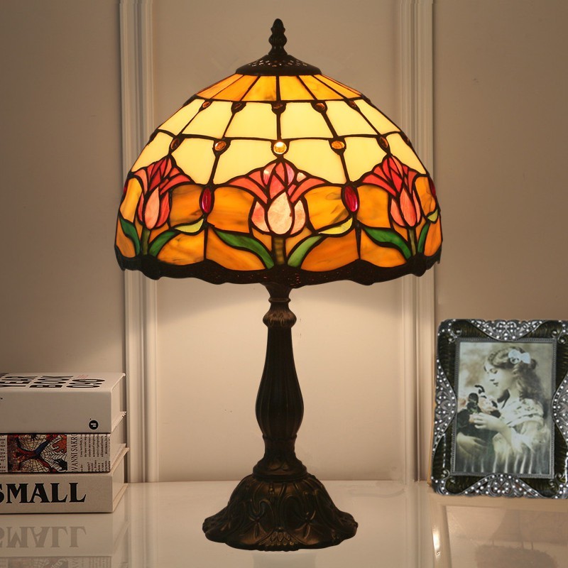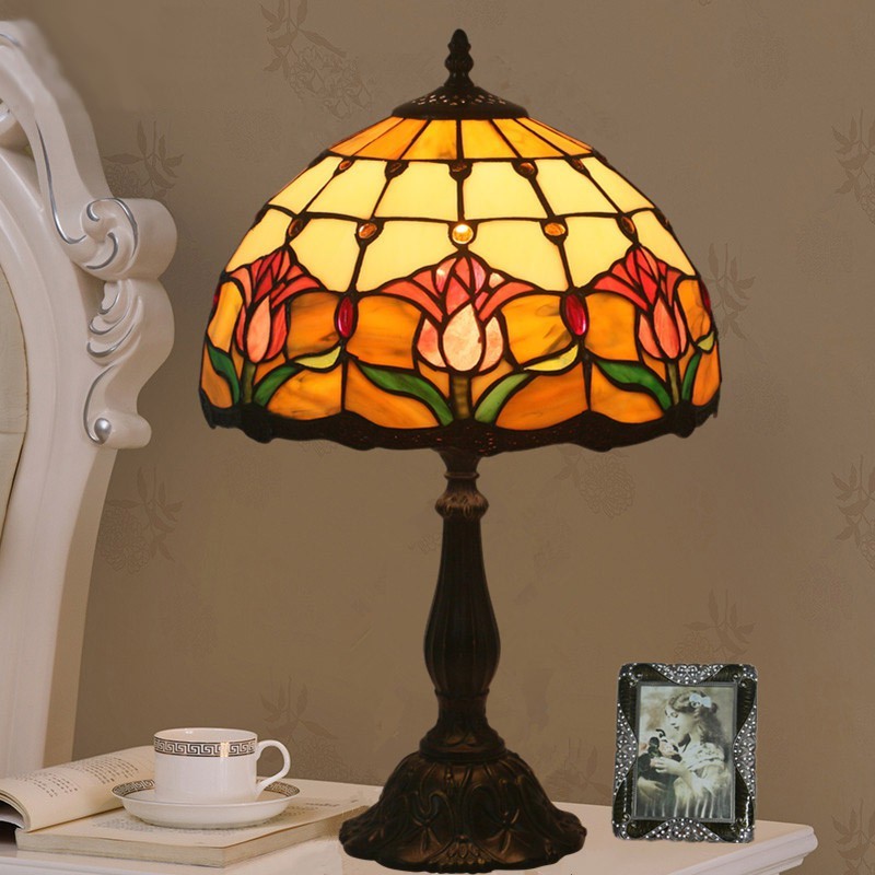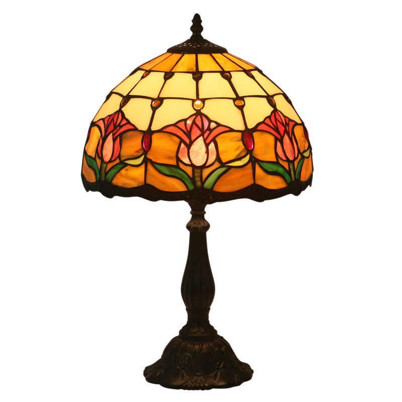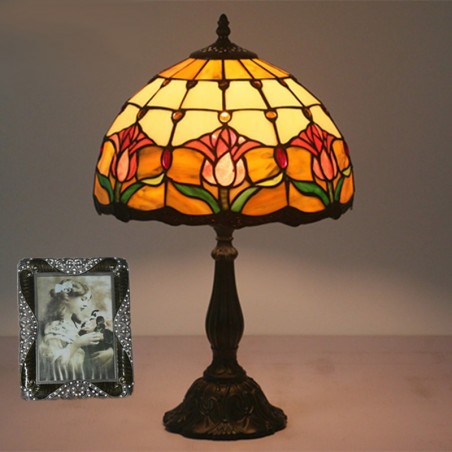 Lámpara de mesa Tiffany estilo tulipán con vitrales europeos de 30 cm