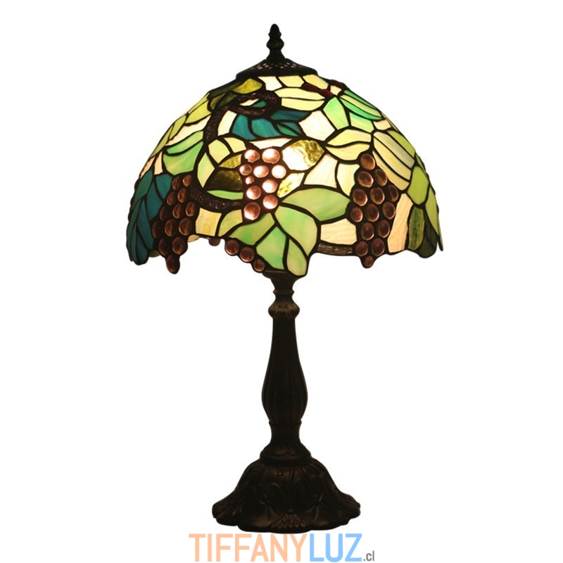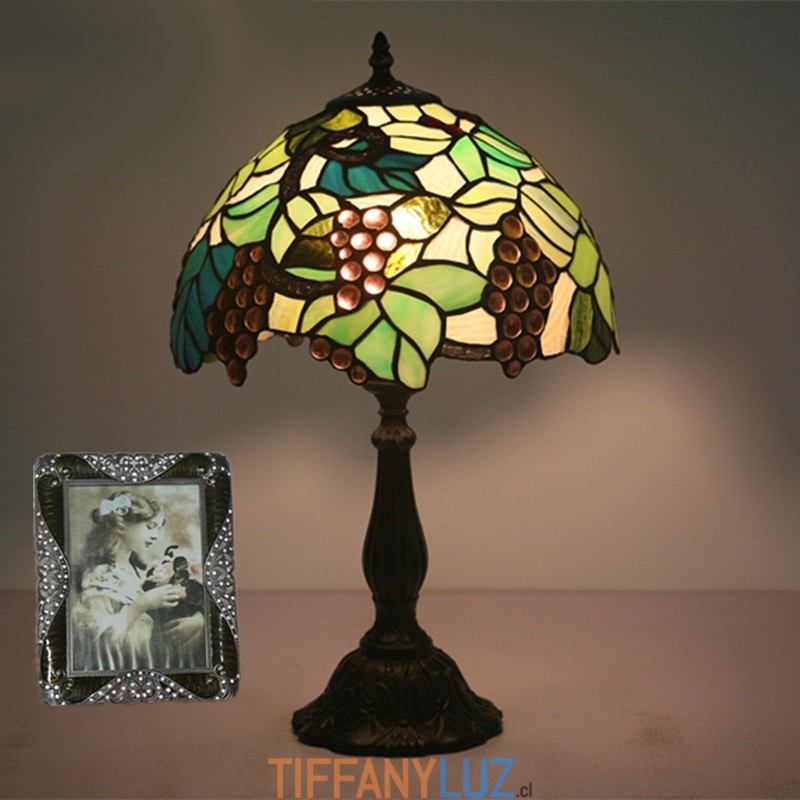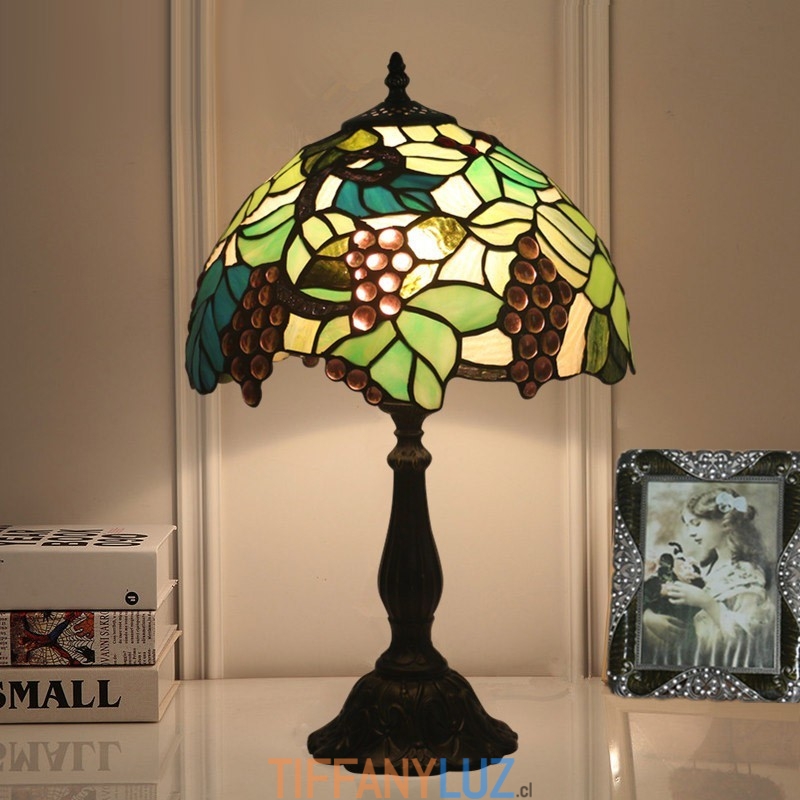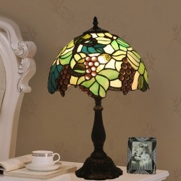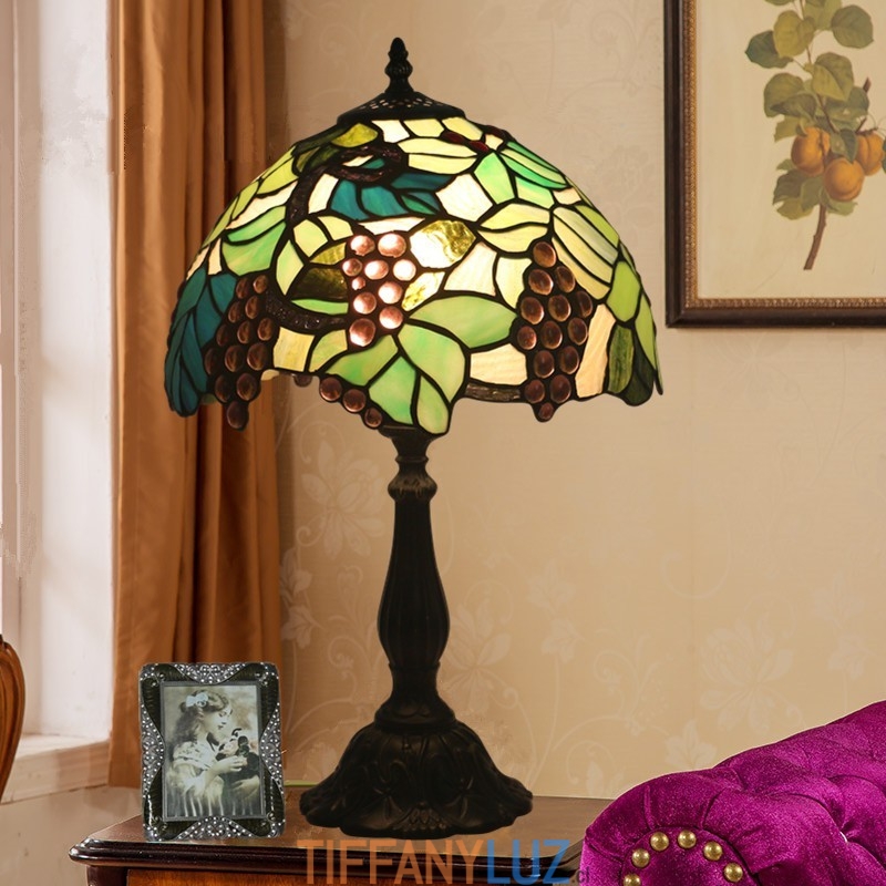 Lámpara de mesa Tiffany estilo uva con vitrales rurales de 30 cm