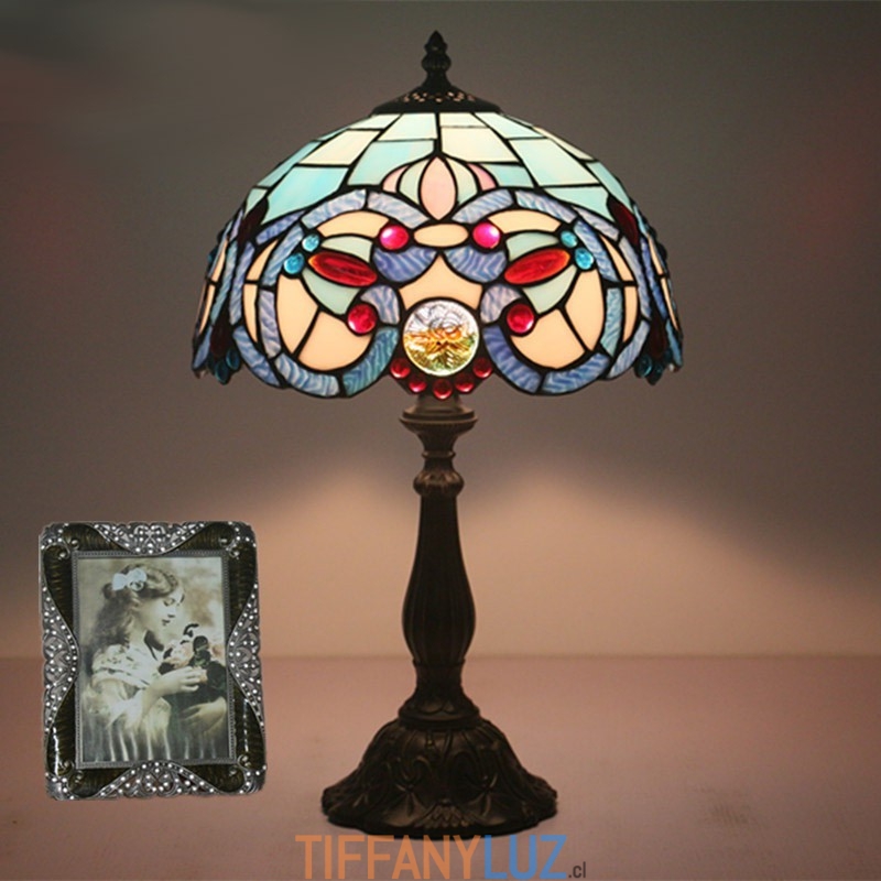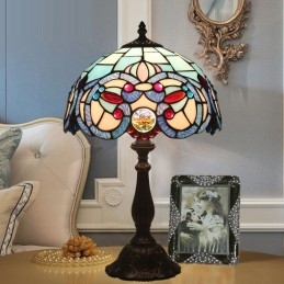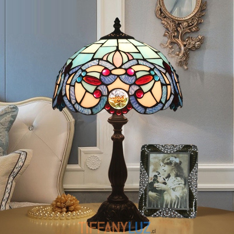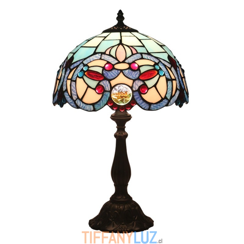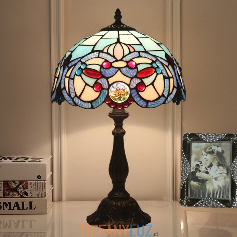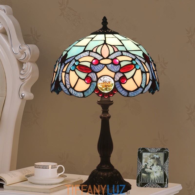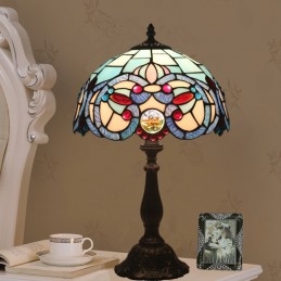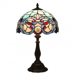 Lámpara de mesa Tiffany de estilo mediterráneo con vidrieras de 30 cm
