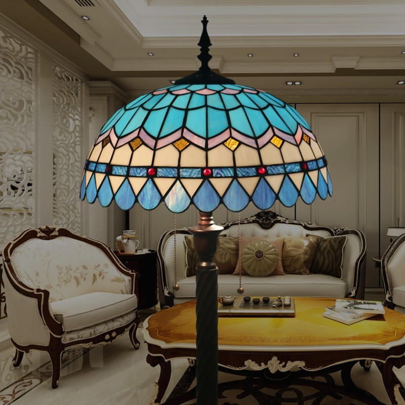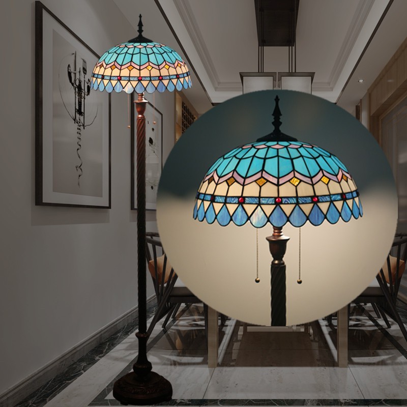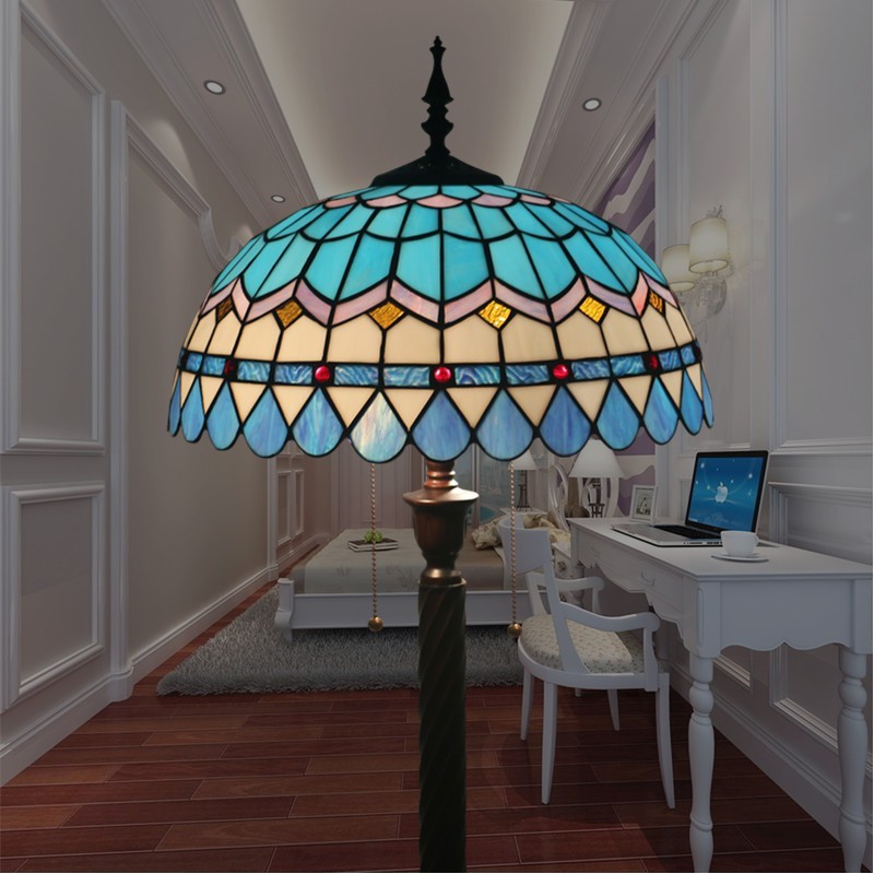 Lámpara de pie Tiffany de estilo mediterráneo con vidrieras de colores de 40 cm