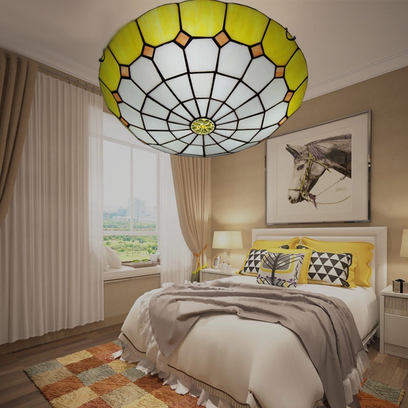 Lámpara de techo Tiffany de cristal de color mediterráneo de 40 cm