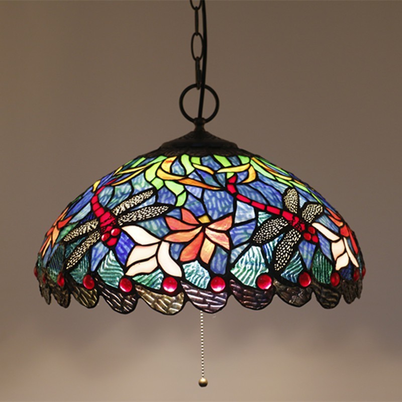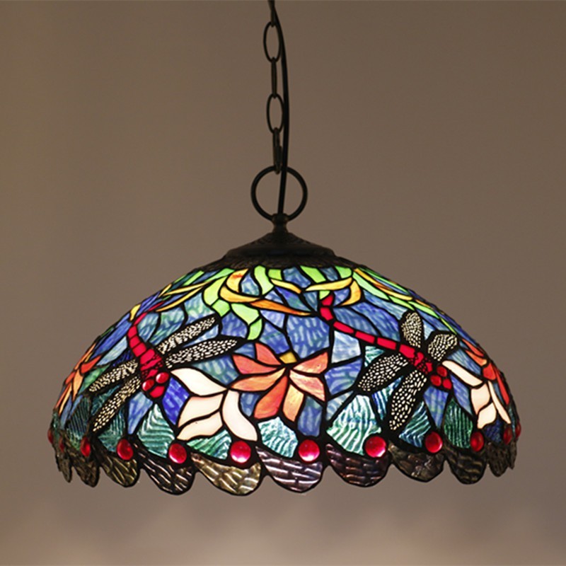 Lámpara colgante estilo Tiffany con libélula de vidrio de colores europeos de 40 cm