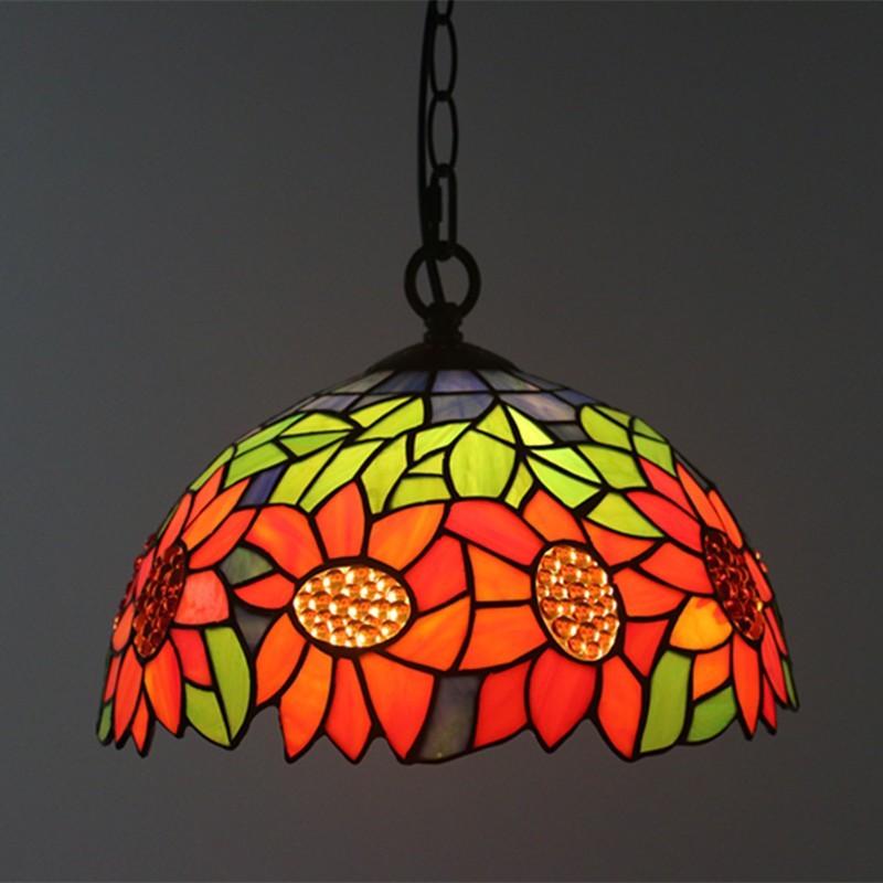 Lámpara colgante estilo Tiffany con girasoles y vitrales europeos de 30 cm